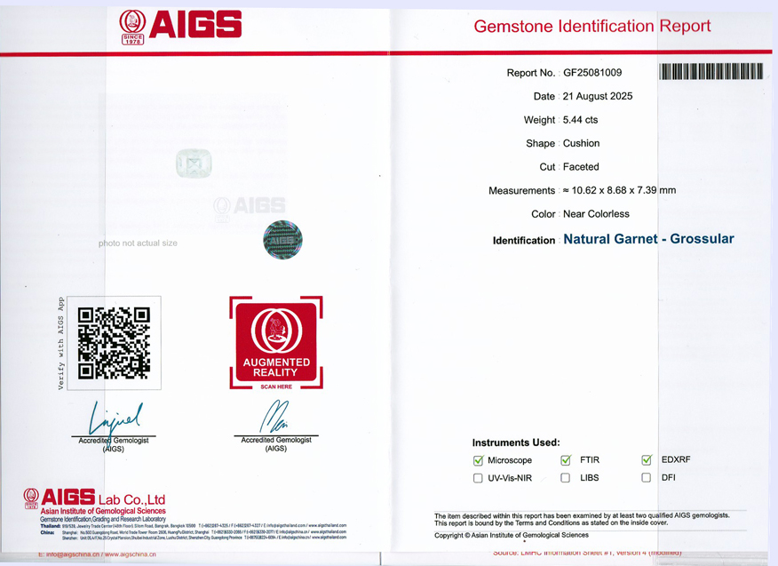 Another Rarity and New Find!! Clear Garnet (Grossular – Cushion Shape -5.44ct) – in order for Garnet, Sapphire, Spinel and some other gemstones to be clear, there cannot be any elemental impurities other than what makes up a particular gemstone species. Any element other than this, will cause the crystal/gemstone to have some color – even if very light in saturation/tone. This is a new find and quite rare. Said by some to be from Tanzania, the origin noted by someone more in the know is Zambia – some are trying to keep the origin under wraps. Unfortunately, most of the material is all small and has white inclusions which are obvious to the unaided eye. Larger pieces are typically the same – larger but with these white inclusions, but larger is still more uncommon that the one carat-ers (plus/minus). However, there are always rare exceptions which this particular gemstone represents. Eye clean but if louped there are a few inclusions (which are interesting) and large, as well as certed, this is a special gem. Our friend/associated had a certed piece (smaller than the one here) that was eye clean and decent size also, but we passed on this due to price. We were lucky enough to find one certed piece of good size(!) and clarity – so we grabbed it! It was less in price per carat than our associates as well as larger - so we can offer our customers an even better deal on this rarity! (sdcl-25-01) $1000/ct - $5440