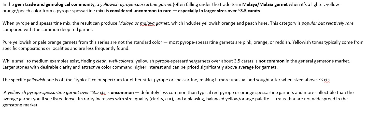 In doing some research on this Uniquely Colored Yellowish Pyrope-Spessartine Garnet, the following was learned: