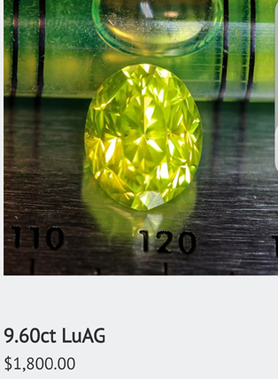 As noted in our Monthly Email, we had hoped to purchase some of the neon greenish yellow (radiative-looking) LuAG (Lutetium Alumunium Garnet - Lab Grown for use