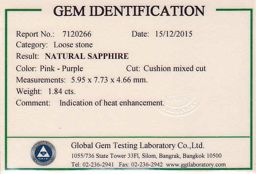 | Unheated Pink/Orangy Purple Oval Sapphire weighing 1.82cts. (egaj-15-08) $9,464 |